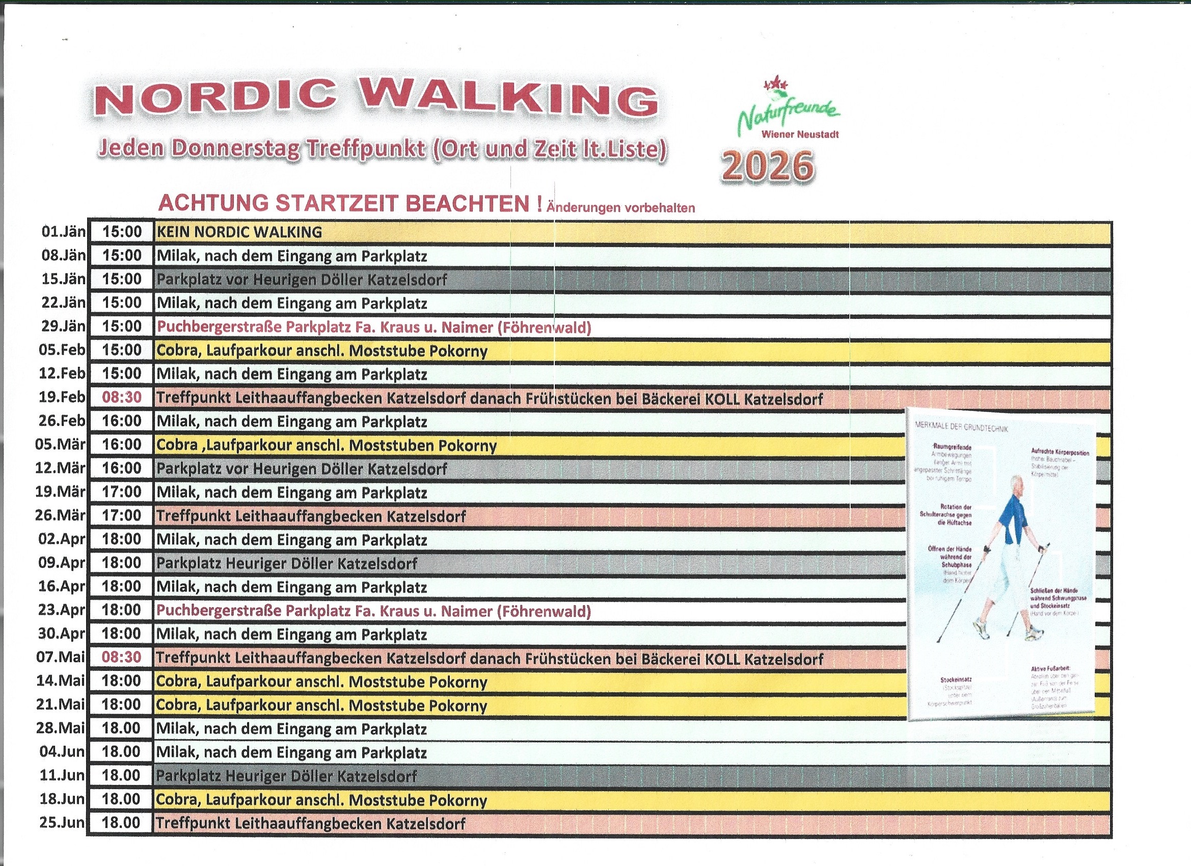 Wir TREFFEN uns jeden DONNERSTAG lt. Plan zum Nordic Walking